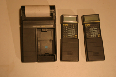 This is a set of Psion hand held organisers